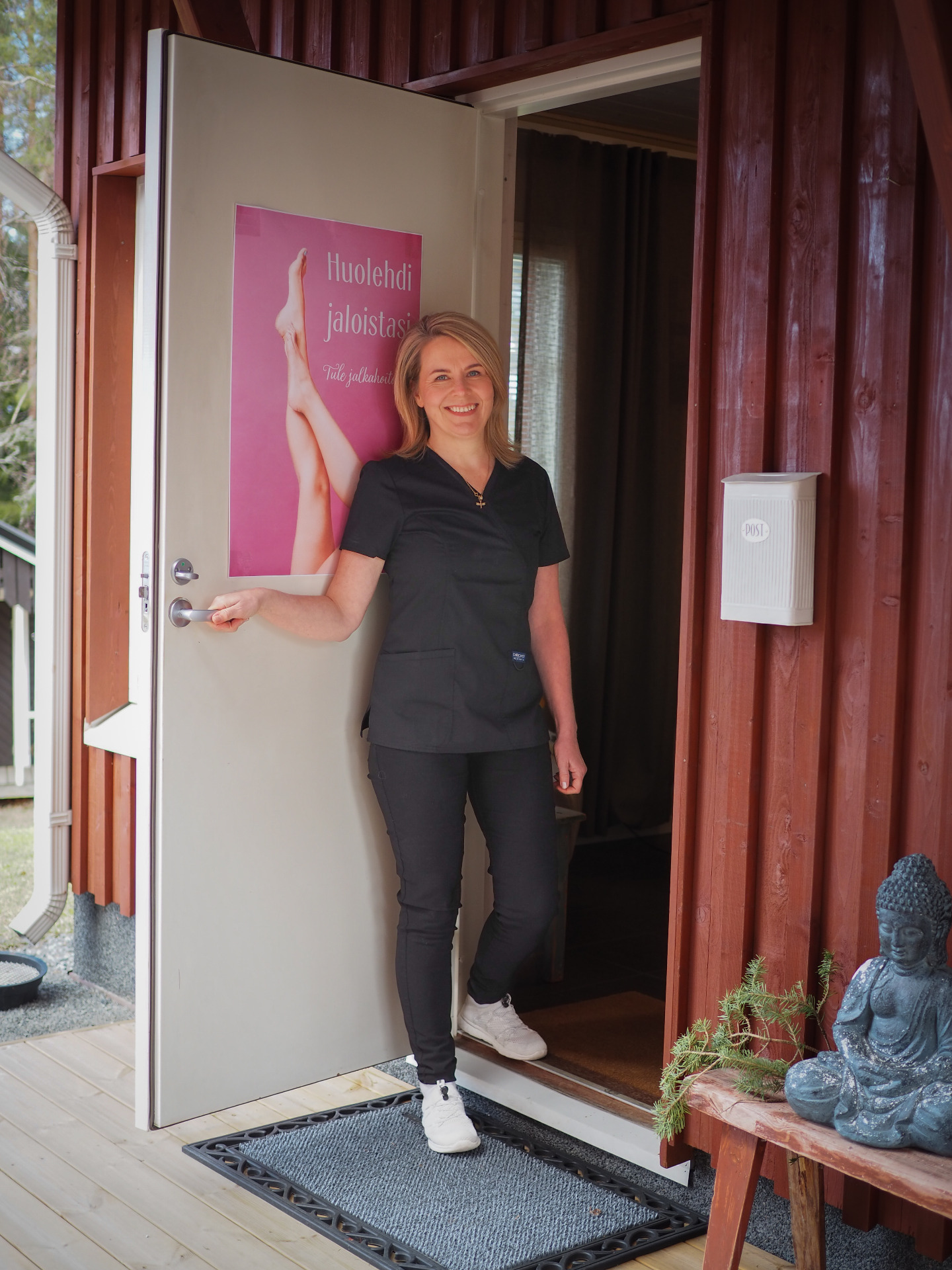 Hoitola sijaitsee kotimme ulkorakennuksessa ja siinä ei ole erikseen odotustilaa, joten tulethan hoitoon korkeintaan 5 min.aikaisemmin. Hoitohuoneen yhteydessä on myös oma wc tila.
